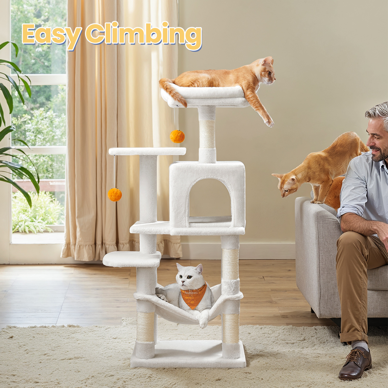 Multi-Cat Comfort: Provide your furry friends with multiple cozy spots to nap and relax with 2 perches and a comfortable cat cave.