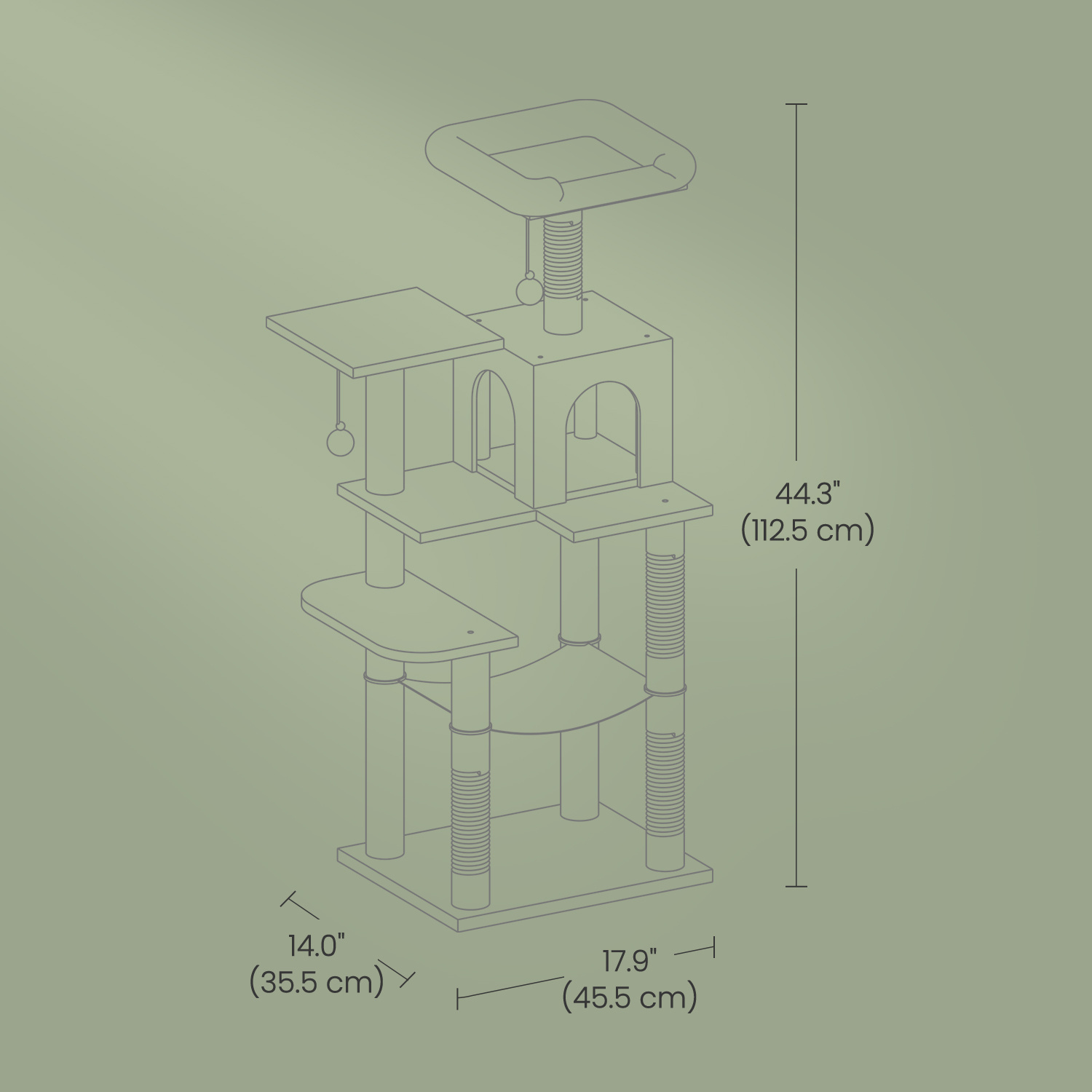 Cat Tree, 44.1-Inch Cat Tower for Indoor Cats, Multi-Level Cat Condo with 4 Scratching Posts